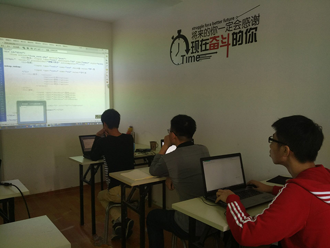 他們的故事讓我開始去相信雅騰,并最終下定了學(xué)習(xí)的決心,來到了雅騰,當然,去雅騰上課也很方便,就在我們學(xué)校的正對面,走路最多10分鐘就可以到,這對于我而言是一個很大的優(yōu)勢。在這里學(xué)習(xí)WEB前端和PHP開發(fā),因為之前在學(xué)校學(xué)習(xí)過HTML和CSS的知識,加上有些許Java方面的基礎(chǔ),來到這里后很快我就融入了課程,每周末兩天的課程讓我的生活變得充實,甚至我開始享受學(xué)習(xí)的日子,享受敲代碼的過程,有的時候為了實現(xiàn)一個“功能”折騰好幾個小時都不覺得累,更喜歡實現(xiàn)后的成就感。