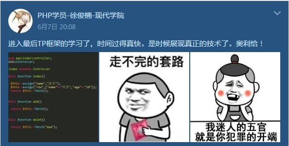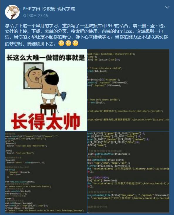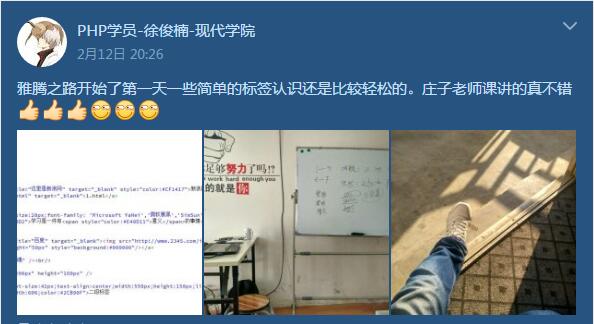 2017年應(yīng)屆畢業(yè)生,畢業(yè)于江西現(xiàn)代學(xué)院,電子信息專業(yè),于2017年2月底參加雅騰教育舉辦的php+web前端開發(fā)日常班學(xué)習(xí),于2017年6月底學(xué)完整個規(guī)定內(nèi)課程技術(shù)并順利就業(yè)。