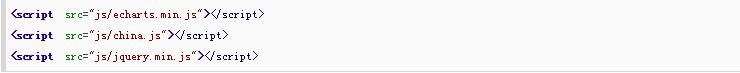 然后是加載Echarts和中國地圖js文件。由于本文實例中應(yīng)用了異步ajax加載數(shù)據(jù),所以需要加載jQuery庫文件。