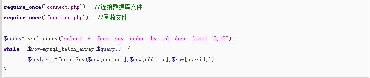 然后在index.php中調(diào)用funciton.php,并連接MySQL數(shù)據(jù)庫輸出評論列表。