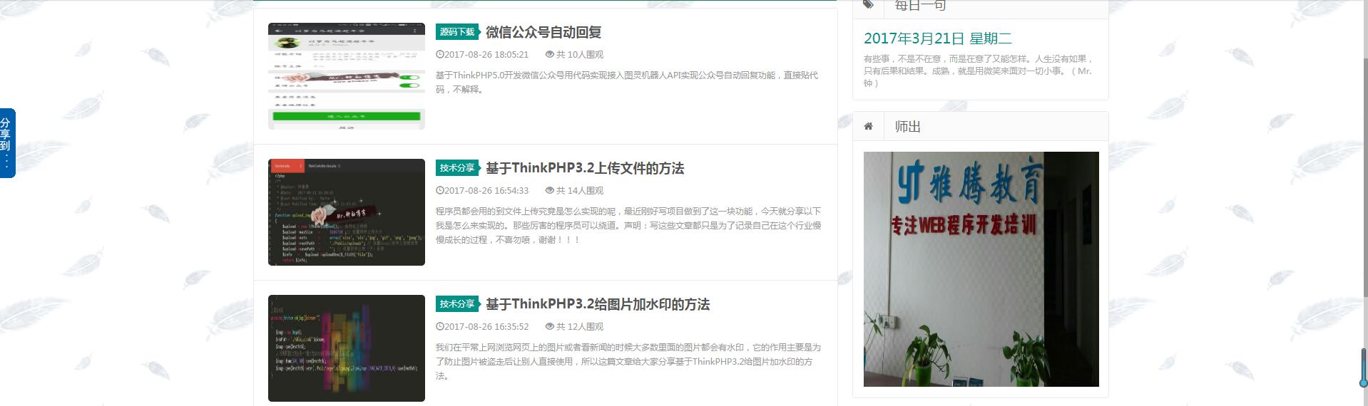 移動(dòng)互聯(lián)網(wǎng)時(shí)代,刷朋友圈、發(fā)微博已經(jīng)成為我們生活中重要的組成部分;我們在了解別人的同時(shí),別人也在通過這些媒介了解我們;自媒體時(shí)代,又是建立品牌的時(shí)代,就像微信公眾號的廣告語——再小的個(gè)體,也有自己的品牌,企業(yè)組織需要建立品牌,個(gè)人同樣需要建立自己的品牌和窗口,接下來一起來看看雅騰教育PHP開發(fā)學(xué)員康勇同學(xué)開發(fā)的一個(gè)關(guān)于自身品牌建立的個(gè)人博客,通過這個(gè)博客,你可以更好的了解到他的世界。