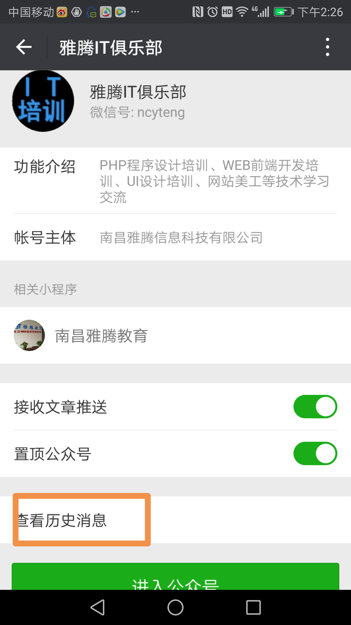 第三步:在公眾號(hào)介紹界面“查看歷史消息”。