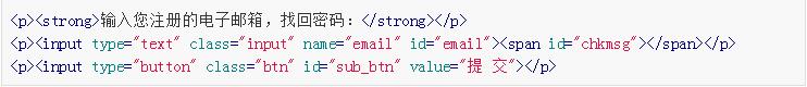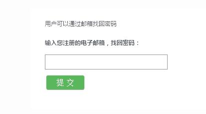 我們?cè)谡一孛艽a的頁(yè)面上放置一個(gè)要求用戶輸入注冊(cè)時(shí)所用的郵箱,然后提交前臺(tái)js來(lái)處理交互。