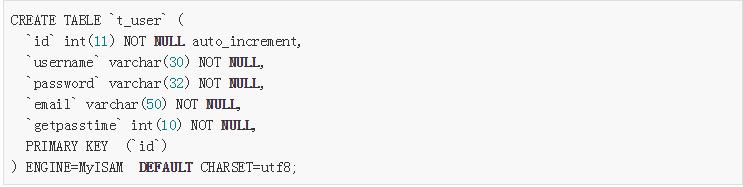 最后,附上數(shù)據(jù)表t_user結(jié)構(gòu):