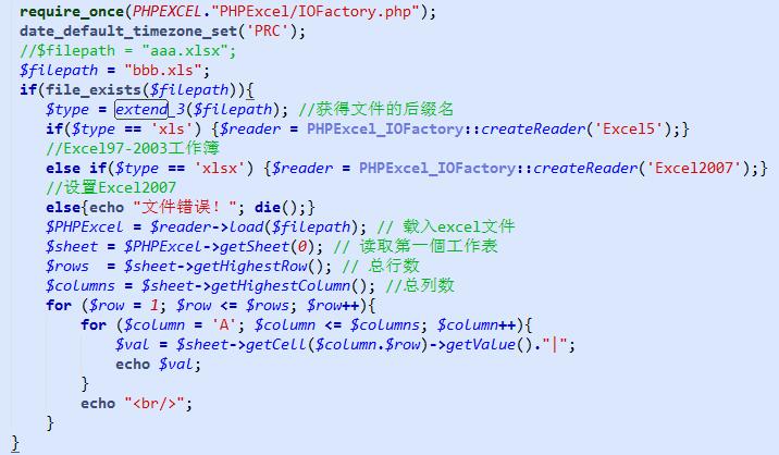 4. 加載PHPexcel文件并讀取數(shù)據(jù)