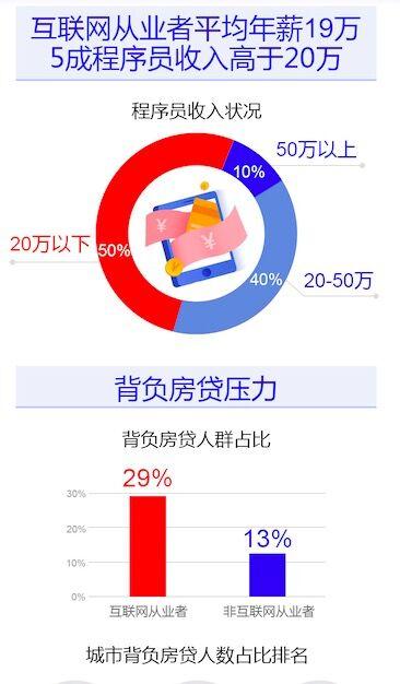 報(bào)告顯示,互聯(lián)網(wǎng)從業(yè)人員平均年薪高達(dá)19萬(wàn)元,其中程序員群里中10%年薪超過(guò)50萬(wàn),但仍有五成程序員年薪不足20萬(wàn)元,相當(dāng)于月薪不足兩萬(wàn)元?;ヂ?lián)網(wǎng)從業(yè)人員的理財(cái)意識(shí)也強(qiáng)于非互聯(lián)網(wǎng)從業(yè)者,數(shù)據(jù)顯示,五成互聯(lián)網(wǎng)從業(yè)者有理財(cái)行為,但是在非互聯(lián)網(wǎng)從業(yè)者群體中,只有27%有理財(cái)行為。