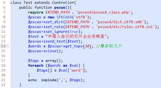 這里給一個scws方法的使用實例