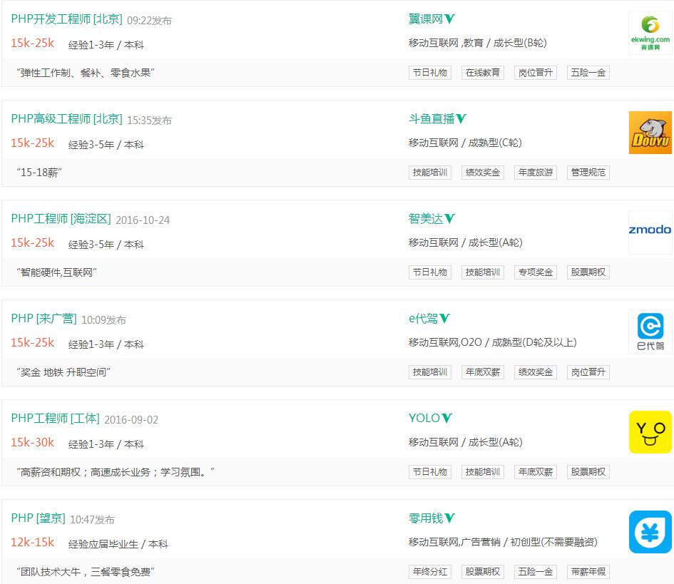 先來(lái)看一下招聘php程序員的招聘情況吧: