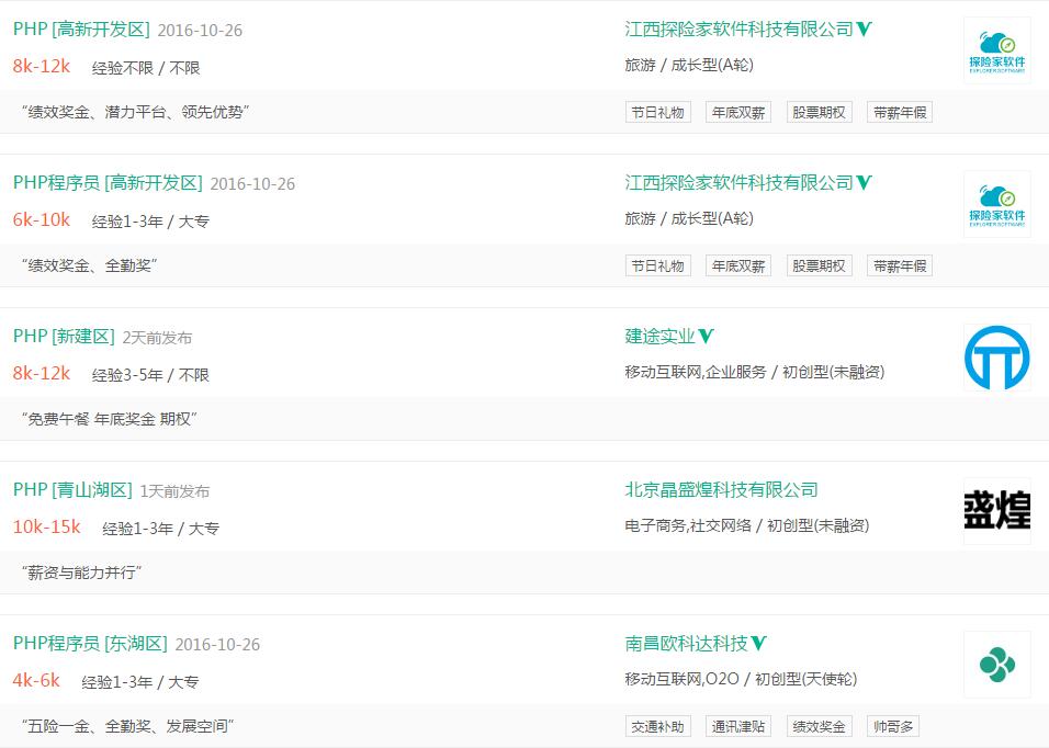 以上是南昌招聘php程序員的薪資待遇情況,大家都知道,如果你學(xué)好之后去北上廣深杭這些互聯(lián)網(wǎng)發(fā)達(dá)的地方工作,待遇和薪水幾乎都是要翻番的,自己可以去網(wǎng)上查閱招聘的一些情況。